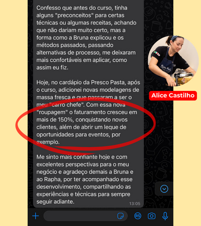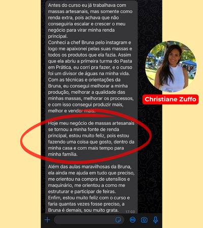Porque ele é um curso que pode mudar a sua vida. E digo isso, pois trabalhar com massas artesanais mudou a minha vida, tanto financeira quanto na questão de qualidade de vida. Se quando iniciei tivesse um curso como esse disponível, com certeza eu teria economizado muito tempo e dinheiro.