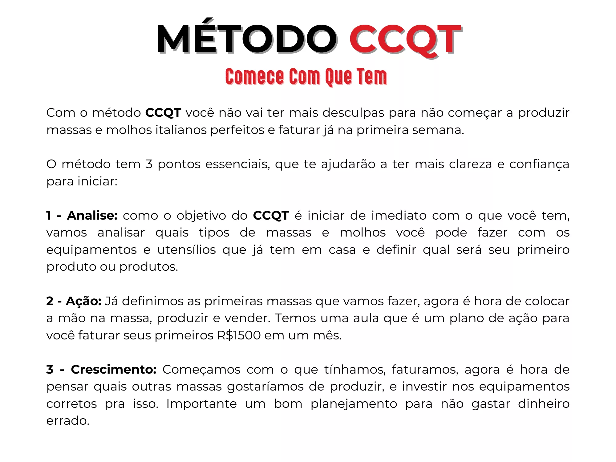 - O método CCQT que eu criei para você não ter mais desculpas para não começar o seu negócio de massas artesanais;